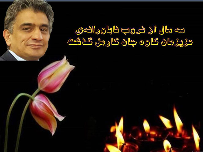 درگذشت نابهنگام این دوست مهربان ، متواضع ، رفیق و دوست عزیرم ، را برای مادر داغ دیده اش بانوی قهرمان محبوبه جان کارمل ، خانمش لیدا جان کارمل ، فرزنداتش آرمان جان و سلیمان جان ، خواهرش اناهیتا جان ، برادرش وستوک جان و تمام جنبش دموکرات ، تسلیت عرض می کنم .