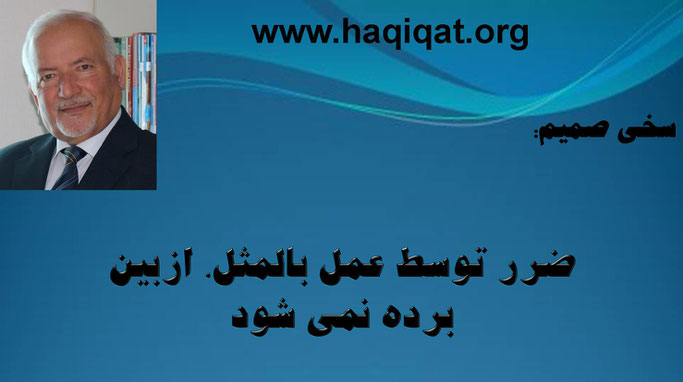 اگربا یک فرضیه و تصور ذهنی بپذیریم که هر ضرر عایده بایست با ضررمثل و مانند جبران و تعویض شود در حقیقت این یک عمل انتقامی وایجاد ضرر جدید است که تسلسل آن به عین منوال تعمیم اضراررا در پی داشته و تباهی بسیاری را در قبال خواهد داشت اکنون اگر به خاطر آرام و تمرکز فکر و ذهن سنجشی بمیان آریم و نتایج اعمال فرضیه را در نظر گیریم می دانیم که و قوع چنین امری سرنوشت جامعه را به انارشیزم و خود سری های خطر ناک تبدیل و بسوی تباهی می برد.