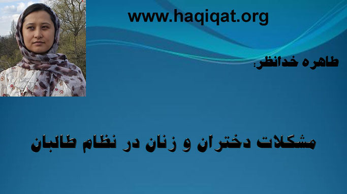 طالبان اجازه تحصیل به دختران نمیدهند ، اجازهی کار به زنان نمیدهند حتی امر کردهاند که زنان بدون همراهی محارم حق قدم زدن هم ندارند ! نفیسه بلخی قابلهی جوان در مزار شریف به جرم نشستن در موتر همکارش در ایست بازرسی طالبان بعد از شکنجه زیاد و قطع پایش با شلیک دوازده مرمی کشته میشود... طالبان حجاب رنگی دختران در مکاتب را بهانه قرار میدهند ... در بامیان دختران صنف پنجم و ششم را برای تحصیل لازم ندانستند و گفتند این دختران از نظر جسمی تنومند هستند و ضرورت به تحصیل آنان نیست! ادعا میکنند که حضور زنان در جامعه باعث لرزان شدن ایمان مردم میشود. اما همین طالبان از پاکستان درخواست دکتر زن برای طبابت زنان در شفاخانههای افغانستان میکنند!...