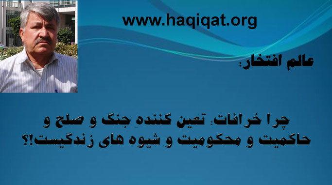 لذا تنها ممکن است عنوانی از این دست؛ درست و بی غل و غش باشد که «چرا خرافات در عالم بشری رواج زیادی دارد؟» تا جاییکه در بسا جاها و در بسا زمانها؛ خرافات تعین کننده جنگ و صلح و امنیت و بد امنی و حاکمیت و محکومیت و در یک قلم؛ تعیین کننده کل زیستار بشری است!!!
