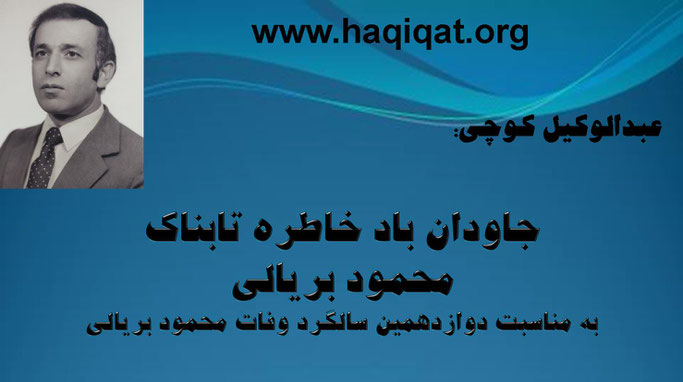 زنده یاد محمود بریالی یکی از سیاستمداران برجسته وتحلیلگر مسایل سیاسی پرتلاش وپر مطالعه ویکی از مبتکرین جریان سیاسی ودموکراتیک کشور ما بود. آموزش خلاقانه اعضای حزب وروشنفکران را با پیگیری سمت وشکل میداد. زنده یاد بریالی عزیز آموزه ها وتجارب گرانبهایش را بخاطر رسیدن به نیروی پیش رونده ترقی خواهی در کشور با همرزمان خود وسایر روشنفکران وطنپرست وداد خواه در میان میگذاشت. زنده یاد محمود بریالی شخصیت انقلابی، عضوهیات رهبری حزب بمثابه انسان عالی آینده نگر خردمند بهترین همرزم وآتشین نفس بود. محمود بریالی شخصیت استثنایی میهن پرست پرشور انقلابی بی مانند دوست وخدمتگزار مردم خود بود. زنده یاد محمود بریالی نزدیک به نیم قرن عمر پربار خود را وقف آرمانهای بزرگ توده های میلیونی وزحمتکشان افغانستان نمود.