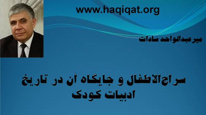 در ین مختصر ، بمناسبت (۱۰۷) امین سال نشر سراجالاطفال ، مکث و مروری بر تاریخچه، اهداف ، محتوای ، توقف زودهنگام و اهمیت این تجربه در تاریخ ادبیات افغانستان صورت میگیرد .