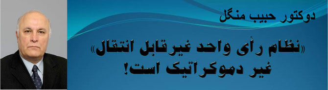 ۵- نظام انتخاباتی اکثریتی رأی واحد غیرقابل انتقال غیر دموکراتیک است؛ زیرا مانند انتخابات ۱۴ سال اخیر درصحنه ء مبارزات انتخاباتی؛ نامزدان گروههای قدرت و ثروت؛ مافیای سیاسی و یغماگر مالی با بهره گیری از منابع و تسهیلات دولتی و مصرف و تقلب و پر نمودن صندوقها؛ رقابت احزاب سیاسی و کاندیدان رقیب بدون پشتوانه مادی؛ ولی با نفوذ در بین مردم را در مبارزات انتخاباتی سد مینماید؛ و صحنه رقابت سیاسی یک شکل نمایشی به خود گرفته و چنانچه دیده شد درنتیجه همچو انتخابات قدرت سیاسی بهطور نوبتی در میان آنان گروههای اقتدار گرا و یغماگر دست با دست میشوند و دموکراسی معنی خود را از دست میدهد.