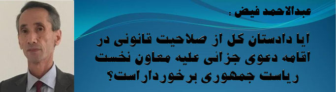 فلهذاء از فحوای احکام مندرج در مواد فوق بهوضوح مشخص میگردد که مقام معاونیت اول ریاست جمهوری یک موقف تشریفاتی و فاقد صلاحیت و پرستیژ حقوقی و سیاسی نبوده بل دومین مقام ذیصلاح است که با در نظر داشت احکام فوق، در صورت غیابت رئیس جمهور، از صلاحیت رهبری ارگانهای سهگانه قدرت برخوردار بوده و لذا علی الرغم عدم صراحت قانون اساسی در خصوص نحوه تعقیب و محاکمه معاونین رئیس جمهور، به هیچ عنوانی نمیتوان معاون اول رئیس جمهور را همانند شهروندان عادی مورد تعقیب، تحقیق و محاکمه قرارداد. لذا از منظر حقوقی و به تأسی از حکم قانون اساسی تعقیب و محاکمه این مقام دولتی مشمول کلیه شرایط و میکانیزمهای است که در ماده (۶۹) قانون اساسی وضاحت یافته است، بنا بر آن این څارنوال نخواهد بود تا فرمان توقیف، دستگیری معاون اول را صادر و یا بوی به حیث دادستان تفهیم اتهام نماید، بلکه با جرأت و با در نظر داشت مسؤولیتهای مسلکی میتوان اذعان داشت که این فقط پارلمان و سپس لویهجرگه خواهد بود که از صلاحیت و پوتنسیلهای لازم حقوقی برخوردار بوده و میتواند به بن بست موجود با تمام مسؤولیتهای عظیمی که در احوال کنونی کشور دارند، نقطه فرجام گذارد در غیر آن این موضوع بیک بحران مضاعف منتهی خواهند گشت.