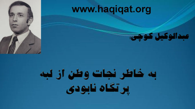 رفقای عزیز ودوستان گرامی بیایید بدور هم جمع شده راه نجات وطن خویش را از بحران بربادی، متحدانه پیدا کنیم ونگذاریم کشتی شکسته وطن مطابق میل دشمنان سوگند خورده ما غرق توفان وتلاطم گردد زیرا همه بهتر میدانند که غرق شدن کشتی نجات وطن غرق شدن همگانیست.