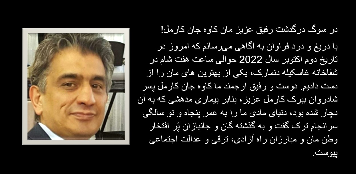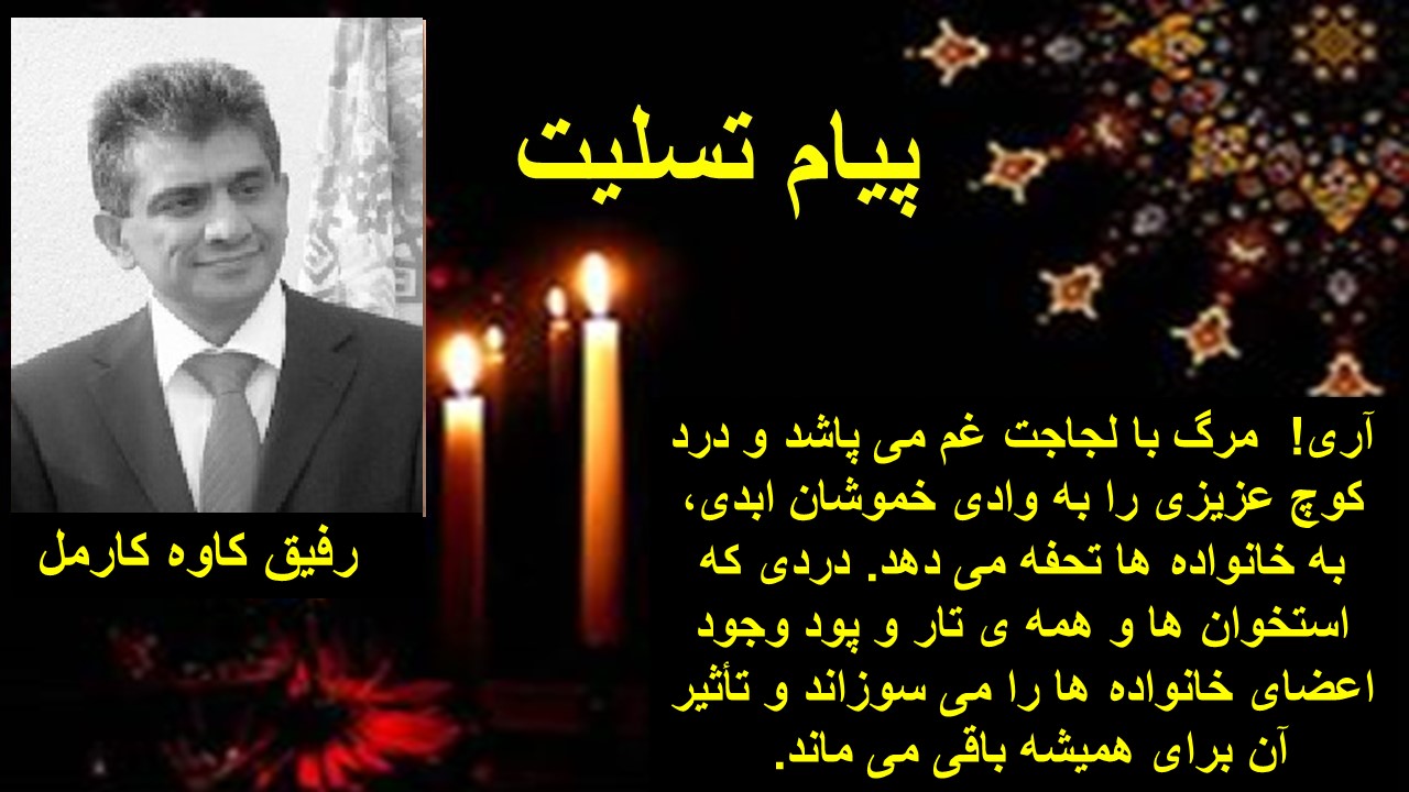 فوت نابهنگام رفيق کاوه کارمل اثر پردرد و المناکی در روان دوستان و یاران و اعضای جنبش دادخواهی کشور بجا گذاشت.