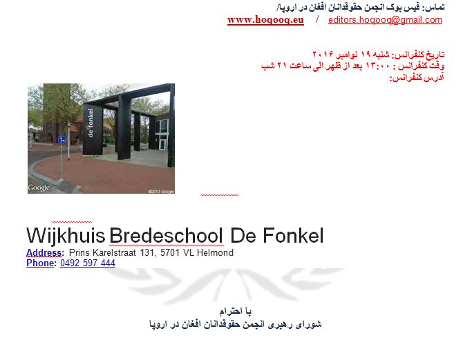 بعداٌ موضوع کنفرانس تحت دو عنوان " اقلیت افغان در اروپا، معضلات حقوقی، دشواریها و ارائه پیشنهادات بخاطر رفع آن.
